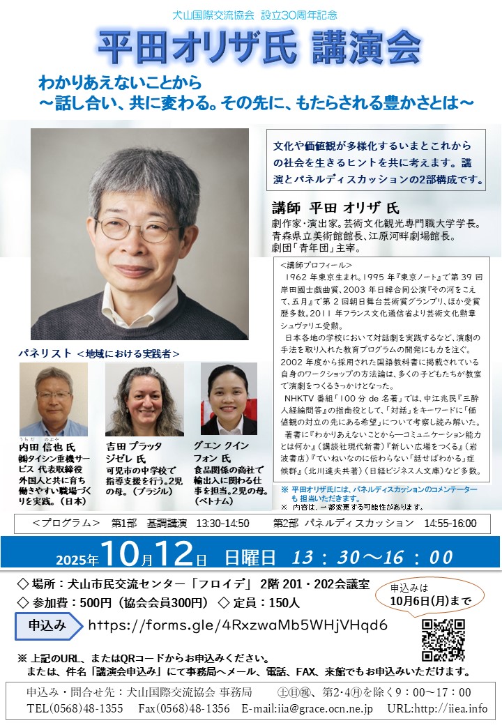 平田オリザ氏講演会(犬山国際交流協会 設立30周年記念)