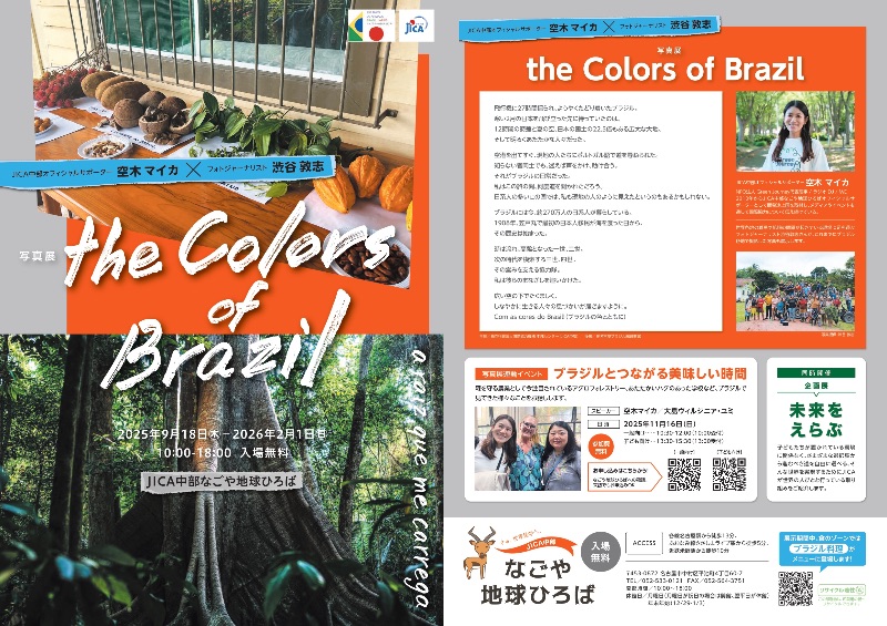 JICA中部なごや地球ひろばオフィシャルサポーターとして開発途上国を取材してきた空木マイカさんが、今回はブラジルを訪問しました! 日本の反対側にあるブラジルはどんな国だろう?空木マイカさんから、森を守る農業のお話や、ブラジルの子どもたちの様子などを聞いてみよう! ★スピーカー ・空木マイカ氏 (JICA中部なごや地球ひろばオフィシャルサポーター) ・大島ヴィルジニア・ユミ氏 (愛知県犬山市 多文化共生推進員/在名古屋ブラジル総領事館管轄区域市民評議会代表理事)
