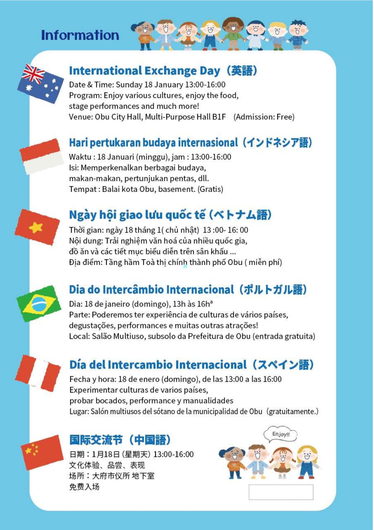 | お問い合わせ | 大府市国際交流協会(OIA) 事務局 吉田、佐藤 TEL: 080-4525-5931 FAX: 0562-47-7320 Email: oia@ma.medias.ne.jp |